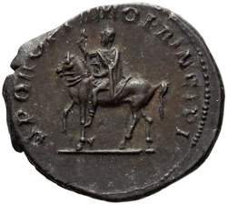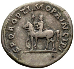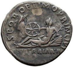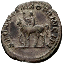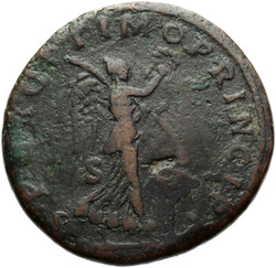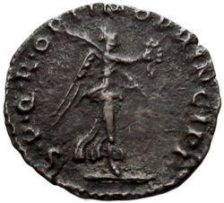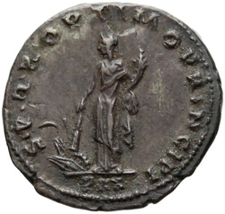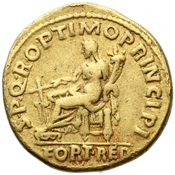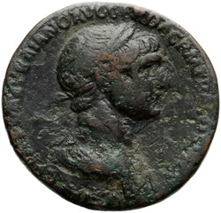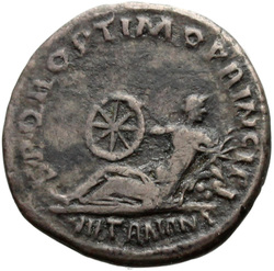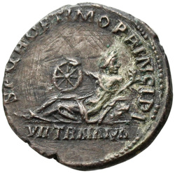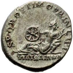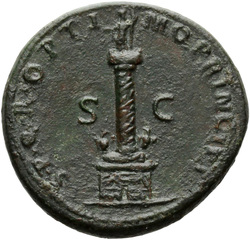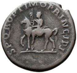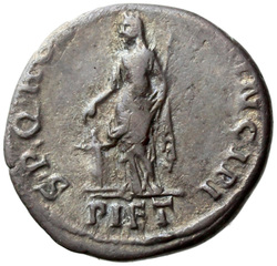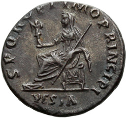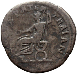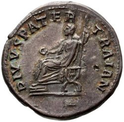 [DIV]VS PATER TRAIAN, Trajan senior, bare-headed, togate, seated left on curule chair, feet on stool, holding patera in extended right hand and sceptre in left