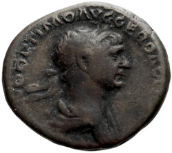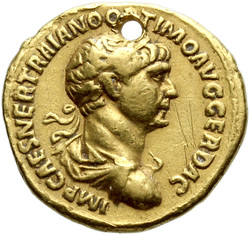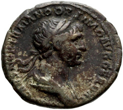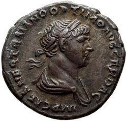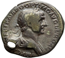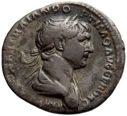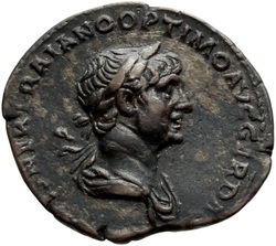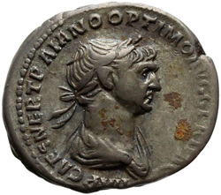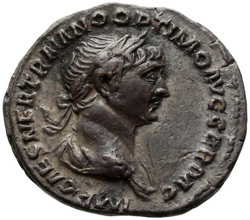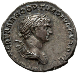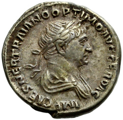 IMP CAES NER TRAIANO OPTIMO AVG [GER DAC], Half-frontal bust of Trajan, laureate, draped, cuirassed, right
