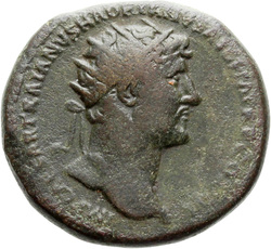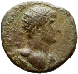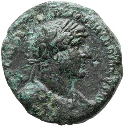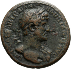 IMP CAESAR TRAIAN HADRIANVS AVG, Bust of Hadrian, laureate, cuirassed, cropped of pteryges, and traces of drapery on far shoulder, right, viewed from front