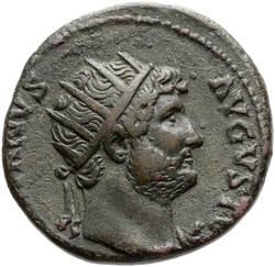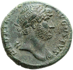 HADRIANVS AVGVSTVS, Bust of Hadrian, laureate, draped and cuirassed, right, viewed from rear or side