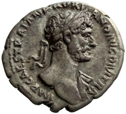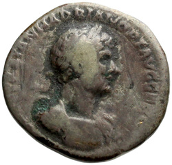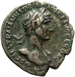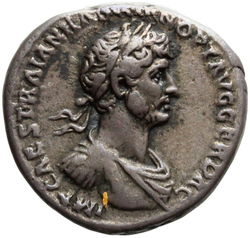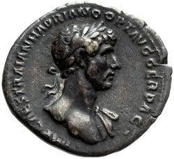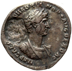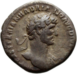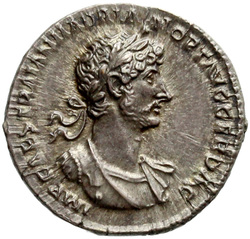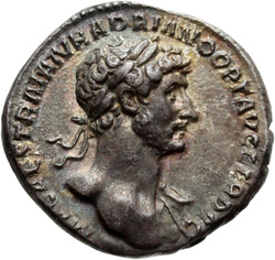 IMP CAESAR TRAIANVS HADRIANVS AVG, Bust of Hadrian, laureate, cuirassed with balteus strap across chest, right, viewed from front