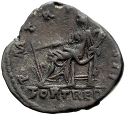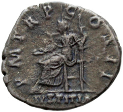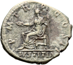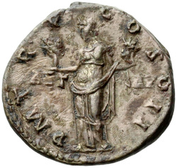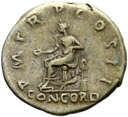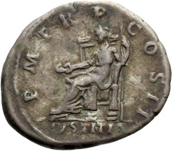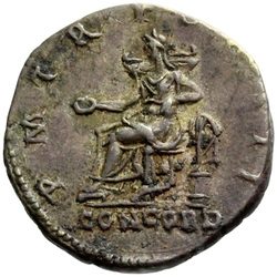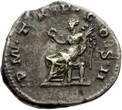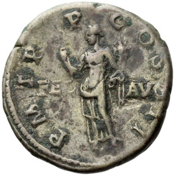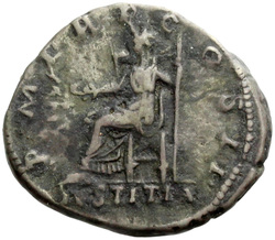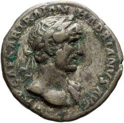 [PONT MAX] TR [POT COS II] // [LIB]ERALITAS AV[G] (in exergue) // S C (in exergue), Hadrian, togate, seated left on curule on platform on right, extending right hand; in front of him, attendant, seated right, giving something to a citizen, who is mounting steps up to platform; in background, Liberalitas standing left holding tessera in raised right hand