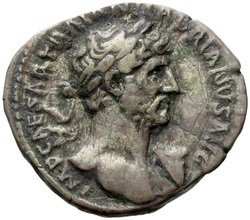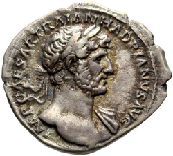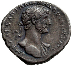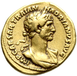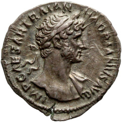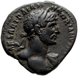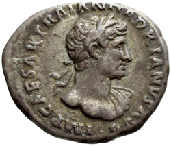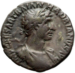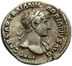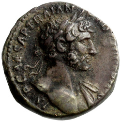 IMP CA[E]S[AR TR]AIANVS HAD[RIANVS AVG], Bust of Hadrian, laureate, bare chest, traces of drapery on far shoulder, right