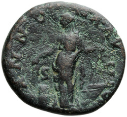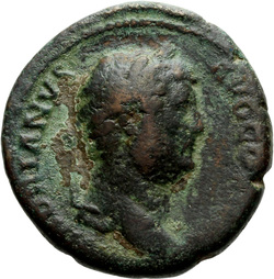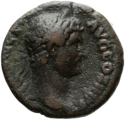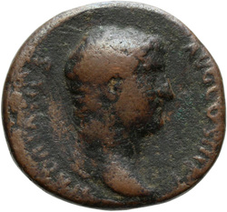 HADRIANVS AVG COS III P P, Bust of Hadrian, laureate, draped, right, viewed from rear or side