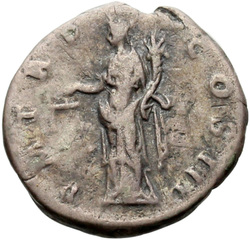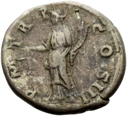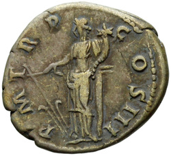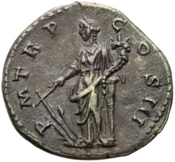 P M TR P COS III, Fortuna, standing left, holding rudder and cornucopia, usually leaning against column behind