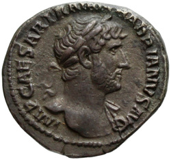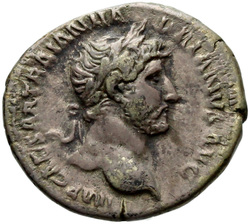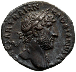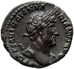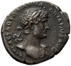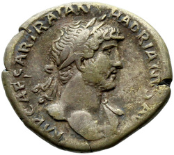 [I]MP CAESAR TRAIAN HADRIANVS AV[G], Bust of Hadrian, laureate, bare chest, traces of drapery on far shoulder, right