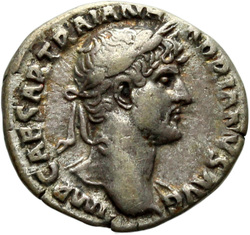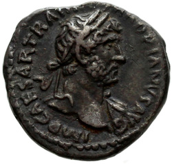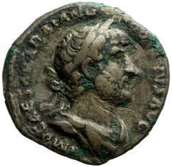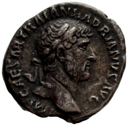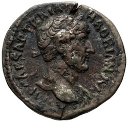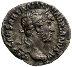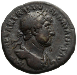 IMP CAESAR TRAIAN HADRIANVS AVG, Bust of Hadrian, laureate, bare chest, traces of drapery on far shoulder, right