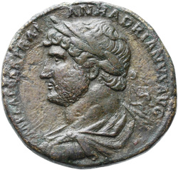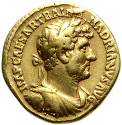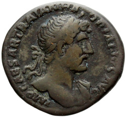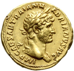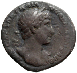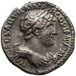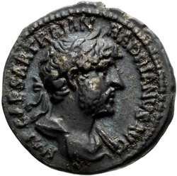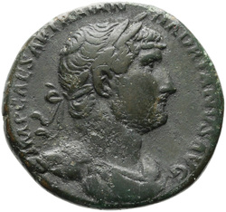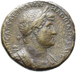 IMP CAESAR TRAIAN HADRIANVS AVG, Bust of Hadrian, laureate, cuirassed, cropped of pteryges, and traces of drapery on far shoulder, right, viewed from front