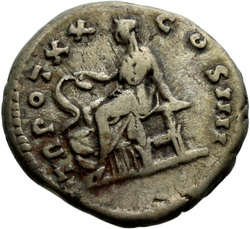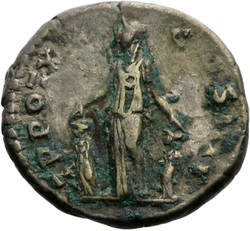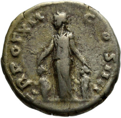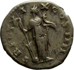 TR POT XIX COS IIII, Fortuna, draped, standing right, holding rudder, vertical, in right hand and cornucopiae, with tip turned from body, in left
