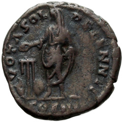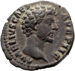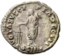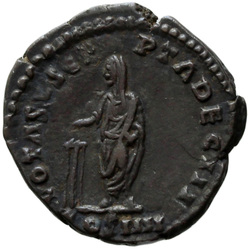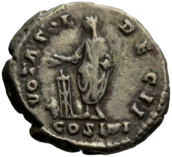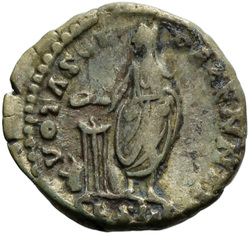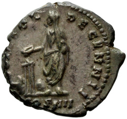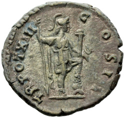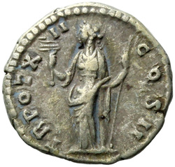 VOTA SOL DECENN II COS IIII, Antoninus Pius, veiled, togate. Standing left, sacrificing out of patera in right hand over tripod-altar left, and holding roll in left hand at side: beside altar, a prostrate bull left