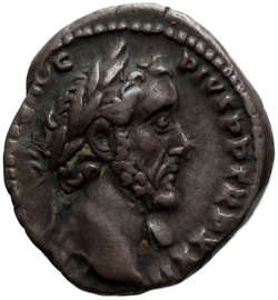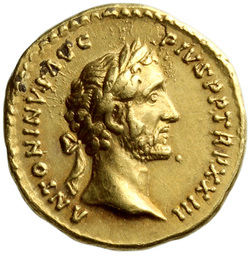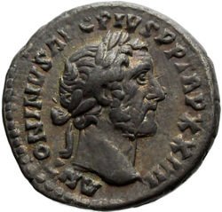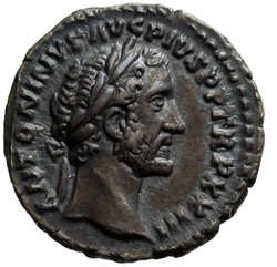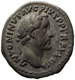 ANTONINVS AVG PIVS P P TR P XXIII, Head of Antoninus Pius, laureate, right
