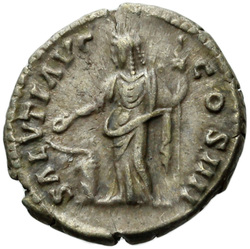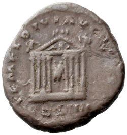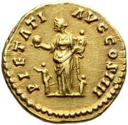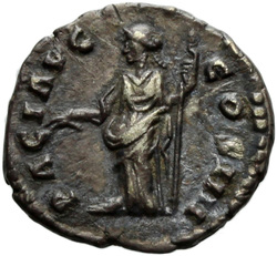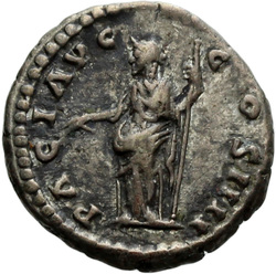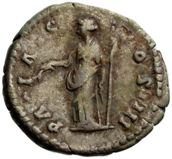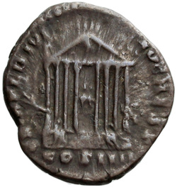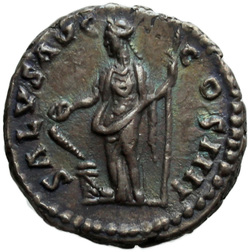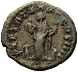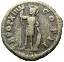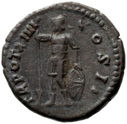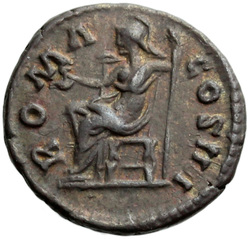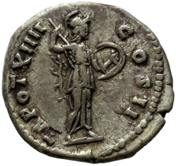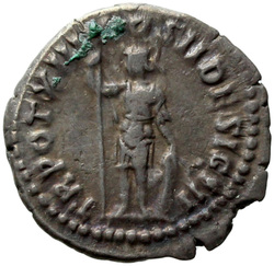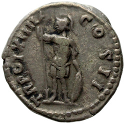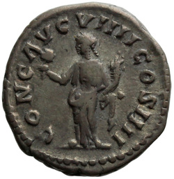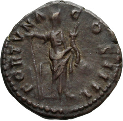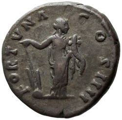 FORTVNA COS IIII, Fortuna, draped, standing right, holding rudder, nearly vertical and set on ground, in right hand and cornucopiae, with tip turned from body, in left