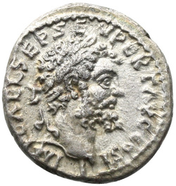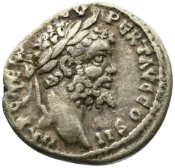 IMP CAE L SEP SEV PERT AVG COS I, Head of Septimius Severus, laureate, right