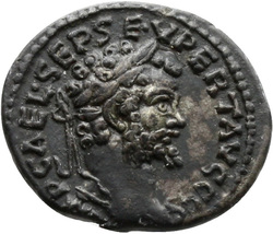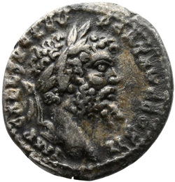 IMP CAE L SEP SEV PERT AVG COS II, Head of Septimius Severus, laureate, right