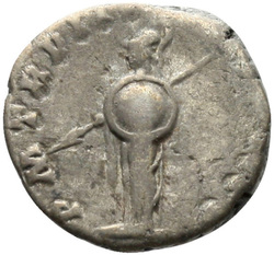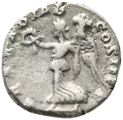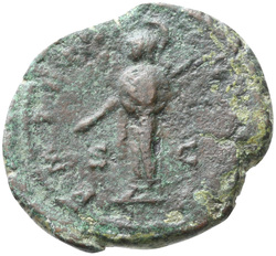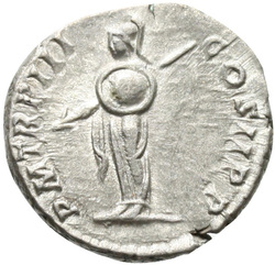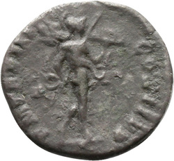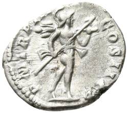 P M TR P III COS II P P, Mars, helmeted, naked except for cloak tied round waist, advancing right, holding transverse spear in right hand and trophy over left shoulder in left hand