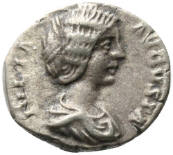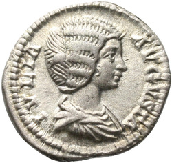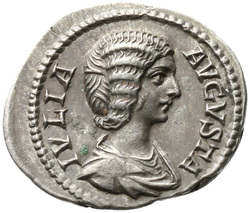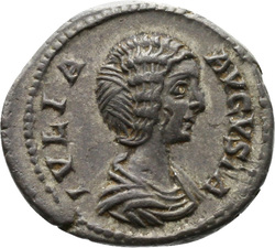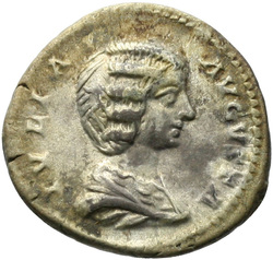 IVLIA AVGVSTA, Bust of Julia Domna, hair waved and coiled at back, draped, right