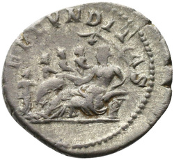 FECVNDITAS, Terra, draped, reclining left under tree, resting right hand on globe, spangled with stars, over which play four children representing the four Seasons, and resting left hand on basket of fruits
