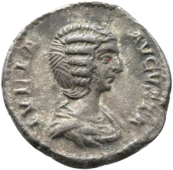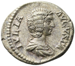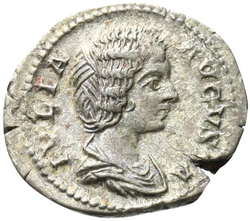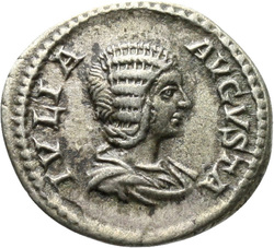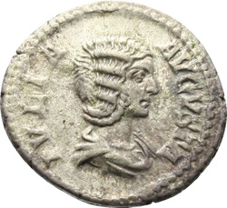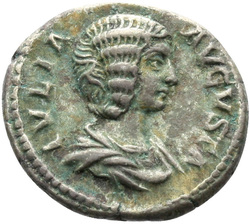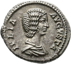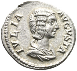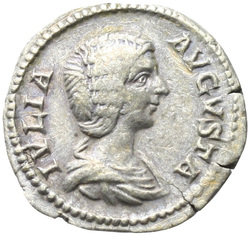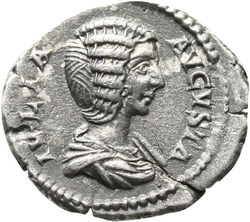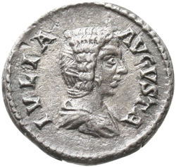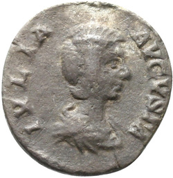 IVLIA AVGVSTA, Bust of Julia Domna, hair waved and coiled at back, draped, right