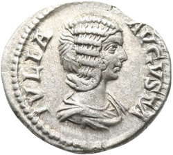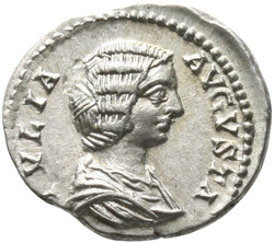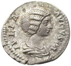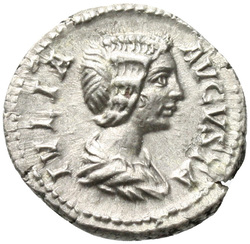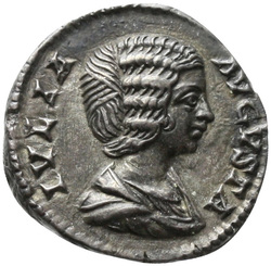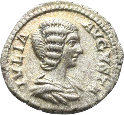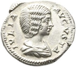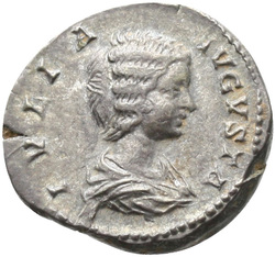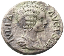 IVLIA AVGVSTA, Bust of Julia Domna, hair waved and coiled at back, draped, right