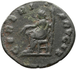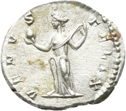 VENVS VICTRIX, Venus, naked to waist, standing left, holding helmet in extended right hand and palm sloped over left shoulder in left hand, resting left elbow on column; at feet, left, shield