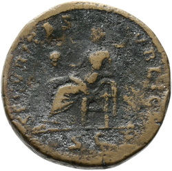 [P] M TR P IIII COS II P P S C, Jupiter, naked except for cloak on shoulders, standing left, holding Victory in extended right hand and vertical sceptre in left hand; at feet, left, eagle