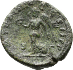 [P] M TR P IIII COS II P P S C, Jupiter, naked except for cloak on shoulders, standing left, holding Victory in extended right hand and vertical sceptre in left hand; at feet, left, eagle