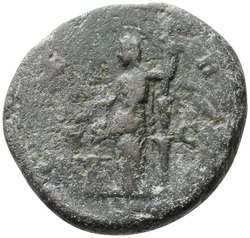 [P] M TR P IIII COS II P P S C, Jupiter, naked except for cloak on shoulders, standing left, holding Victory in extended right hand and vertical sceptre in left hand; at feet, left, eagle