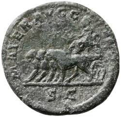 [P] M TR P IIII COS II P P S C, Jupiter, naked except for cloak on shoulders, standing left, holding Victory in extended right hand and vertical sceptre in left hand; at feet, left, eagle
