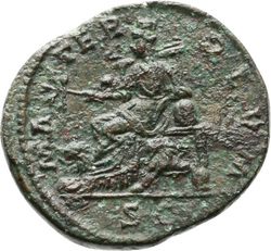 [P] M TR P IIII COS II P P S C, Jupiter, naked except for cloak on shoulders, standing left, holding Victory in extended right hand and vertical sceptre in left hand; at feet, left, eagle
