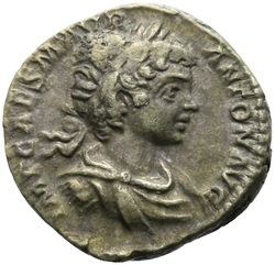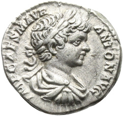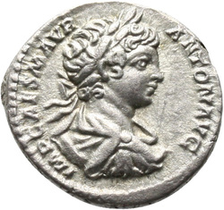 IMP CAES M AVR ANTON AVG, Bust of Caracalla, laureate, draped, cuirassed, right, viewed from front