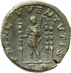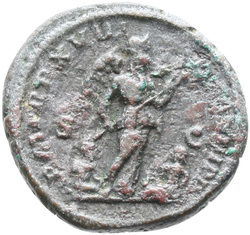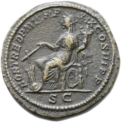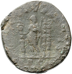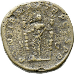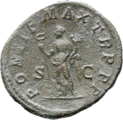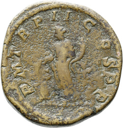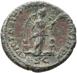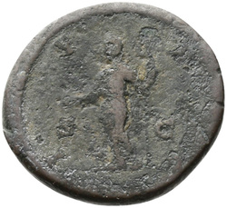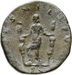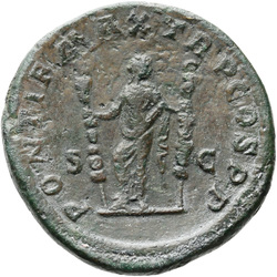 IVNO S C, Juno, veiled, draped, standing left, holding patera in extended right hand and sceptre in left hand; at feet, left, peacock