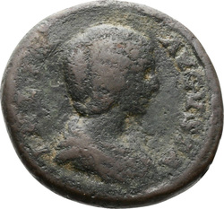 IVLIA AVGVSTA, Bust of Julia Domna, hair waved and coiled at back, draped, right