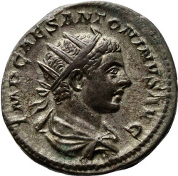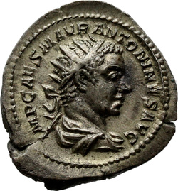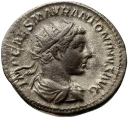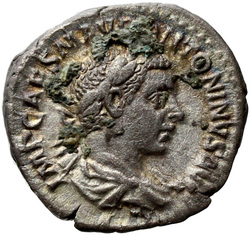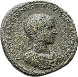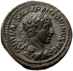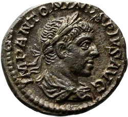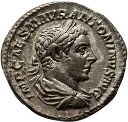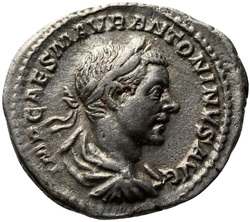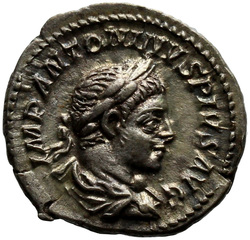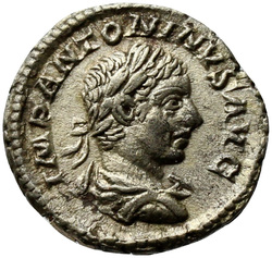 IMP CAES M AVR ANTONINVS AVG, Bust of Elagabalus, laureate, draped, cuirassed, right
