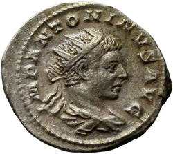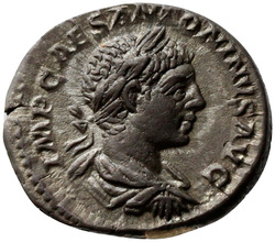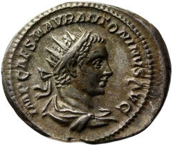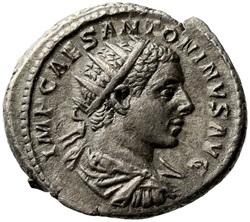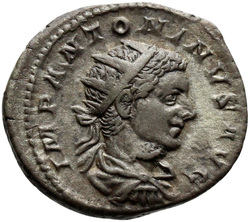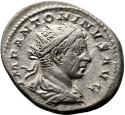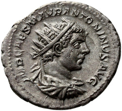 IMP ANTONINVS PIVS AVG, Bust of Elagabalus, laureate, draped, right