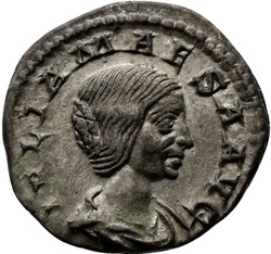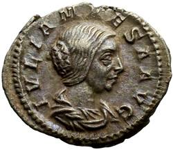 IVLIA MAESA AVG, Bust of Julia Maesa, hair waved and turned up low at the back, draped, right