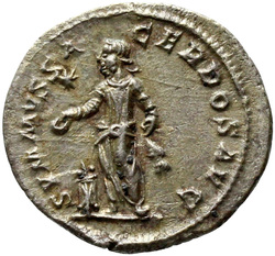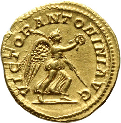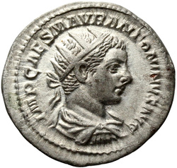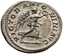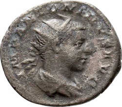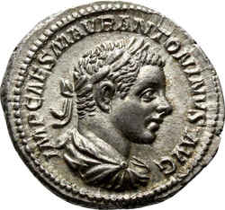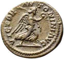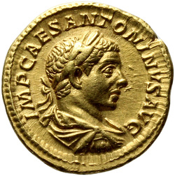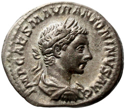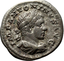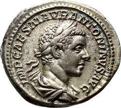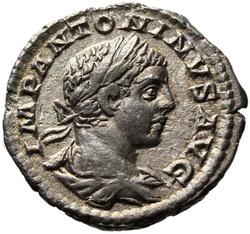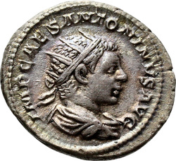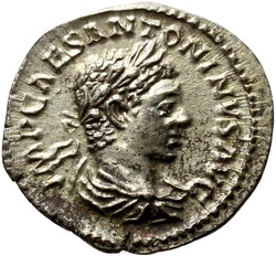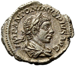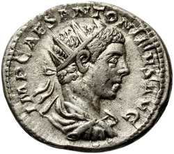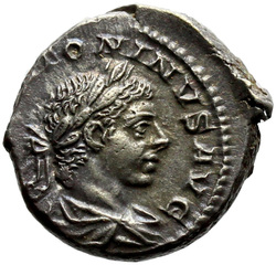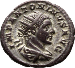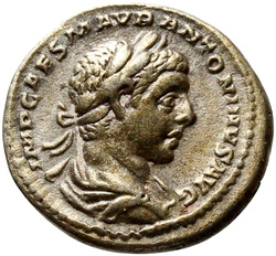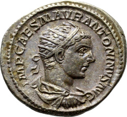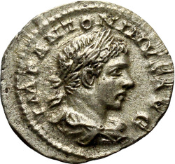 IMP ANTONINVS PIVS AVG, Bust of Elagabalus, horned, laureate, draped, right