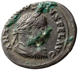 ANTONINVS PIVS FEL AVG, Bust of Elagabalus, laureate, draped, cuirassed, right