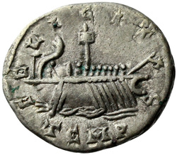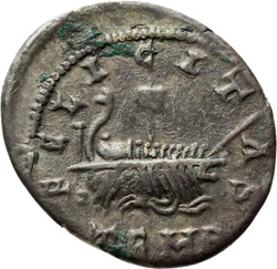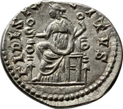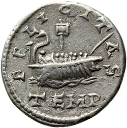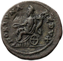 FORTVNA REDVX, Fortuna, wearing modius, draped, seated left, holding patera in right hand and cornucopiae in left hand; beneath seat, wheel