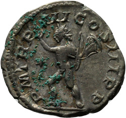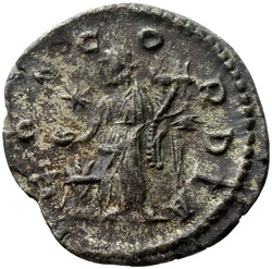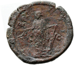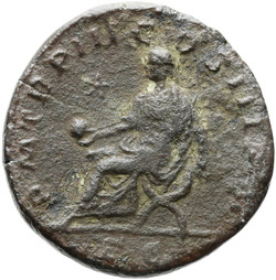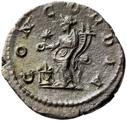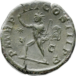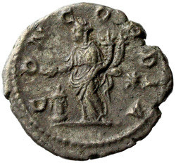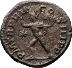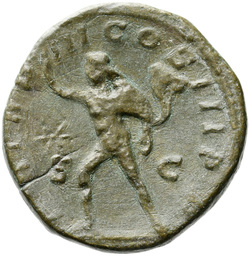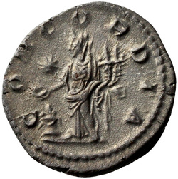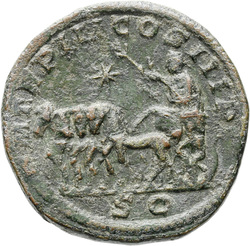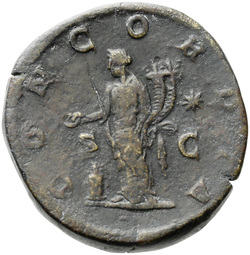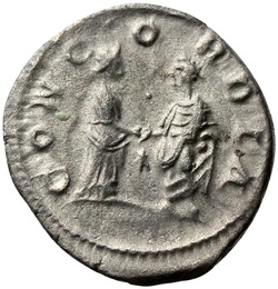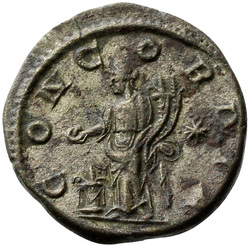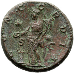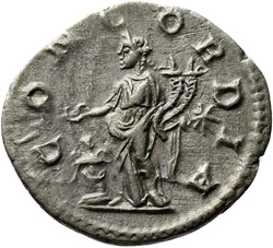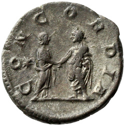 CONCORDIA, Elagabalus, togate, and Aquilia Severa, draped, standing right and left, facing each other, clasping right hands; in field, star
