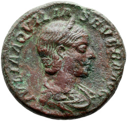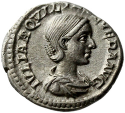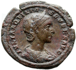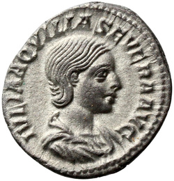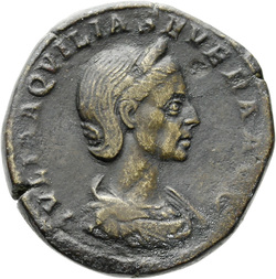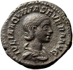 IVLIA AQVILIA SEVERA AVG, Bust of Aquilia Severa, hair waved and fastened in plait, draped, right
