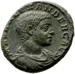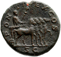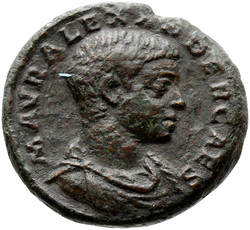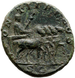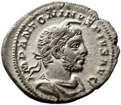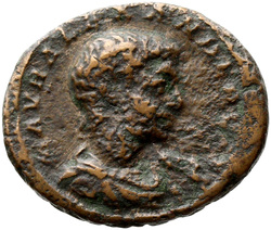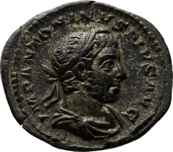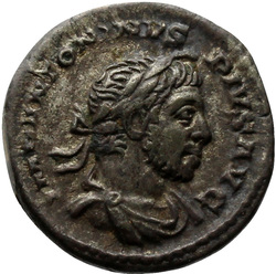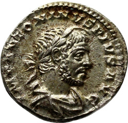IMP ANTONIN[VS PIV]S AVG, Bust of Elagabalus, horned, laureate, draped, right