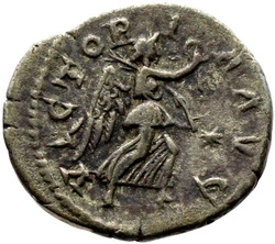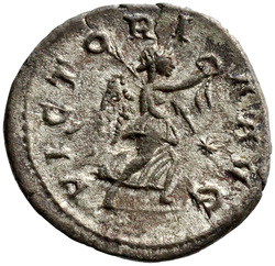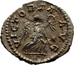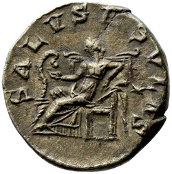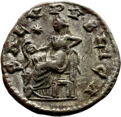[P M TR P V] COS IIII P P S C, Elagabalus, in Syrian priestly robes, standing left, sacrificing out of patera in right hand over lighted altar, holding club in left hand; behind altar, bull crouching; in field, star