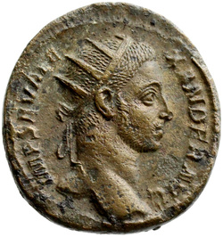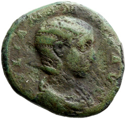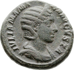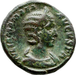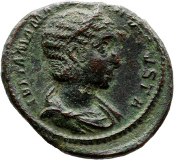 IVLIA MAMAEA AVGVSTA, Bust of Julia Mamaea, diademed, draped, on crescent, right