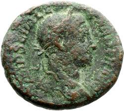 FELICI[TAS] PVBLICA S C, Felicitas, draped, standing front, head left, legs crossed, holding caduceus in right hand and leaning on column with left arm