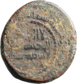لا اله الا / الله وحده / لا شريك له / على يدي احمد, Arabic inscription in field, enclosed by pointillate circle, Arabic inscription anti-clockwise in margin from 130h, all enclosed by pointillate circle