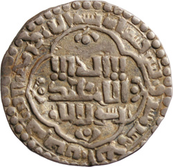 الامام / لا اله الا الله / وحده لا شريك له / المستنصر بالله / امير المؤمنين / نصر الله, Arabic inscription in field, second Arabic inscription (Sura 30:4, in part) in field beginning upward in right lobe and continuing vertically downwards in left lobe, enclosed by quatrefoil, enclosed by Arabic inscription anti-clockwise in margin from 12h, all enclosed by linear circle