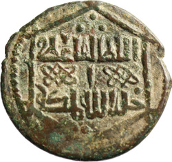 السلطان الملك المجأهد سيف الاسلام علي بن داود, Hawk to left centre, enclosed by hexalobe, enclosed by Arabic inscription anti-clockwise, enclosed by linear circle, enclosed by Arabic inscription anti-clockwise in margin, all enclosed by linear and pointillate circles