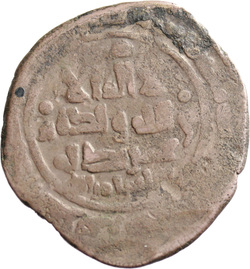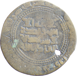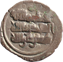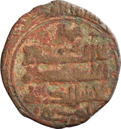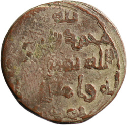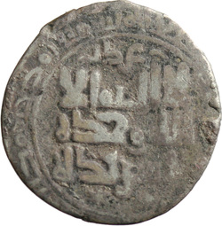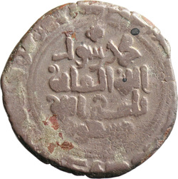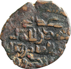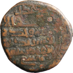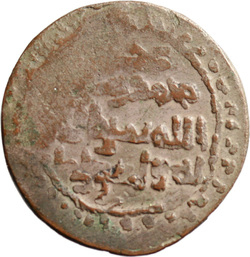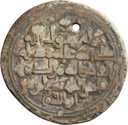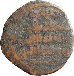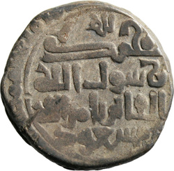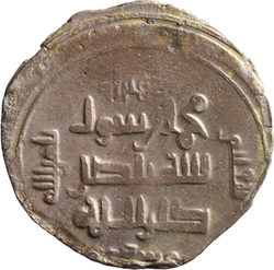 ظهيرله (كذا) / محمد رسول / الله ناصر / دين الله / مسعود / القائم / بامر الله, Arabic inscription in field with segments around, all enclosed by plain circle