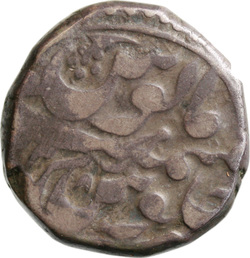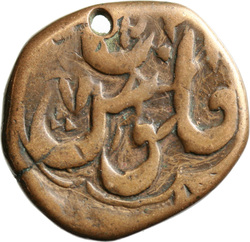 ضرب بهكهر سنة جلوس ميمنت مأنوس /١٢٨, Persian inscription in field, enclosed by plain and pointillate circles