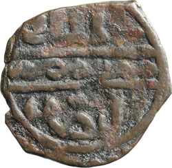 السلطان الملك / الافضل ضرغام / الدين العباس / بن علي, Arabic inscription in field, enclosed by linear circle with small depression at bottom, fish above depression, enclosed by Arabic inscription anti-clockwise in margin, all enclosed by linear and pointillate circles